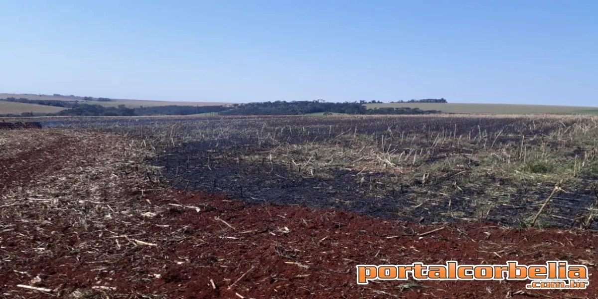 No local, uma lavoura de milho, com apoio de tratores foi possivel controlar o incêndio e evitar maiores danos.