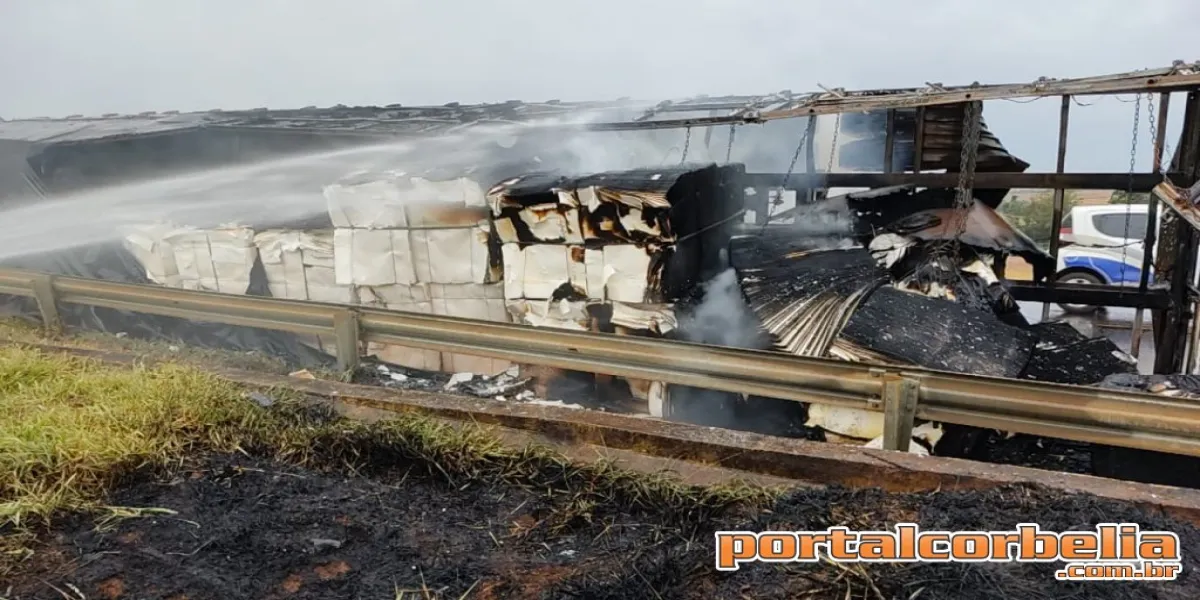 Um tombamento seguido de incêndio em uma carreta foi registrado no início desta manhã de segunda, por volta das 6h30 na BR 369 KM 594 na praça de pedágio em Corbélia.