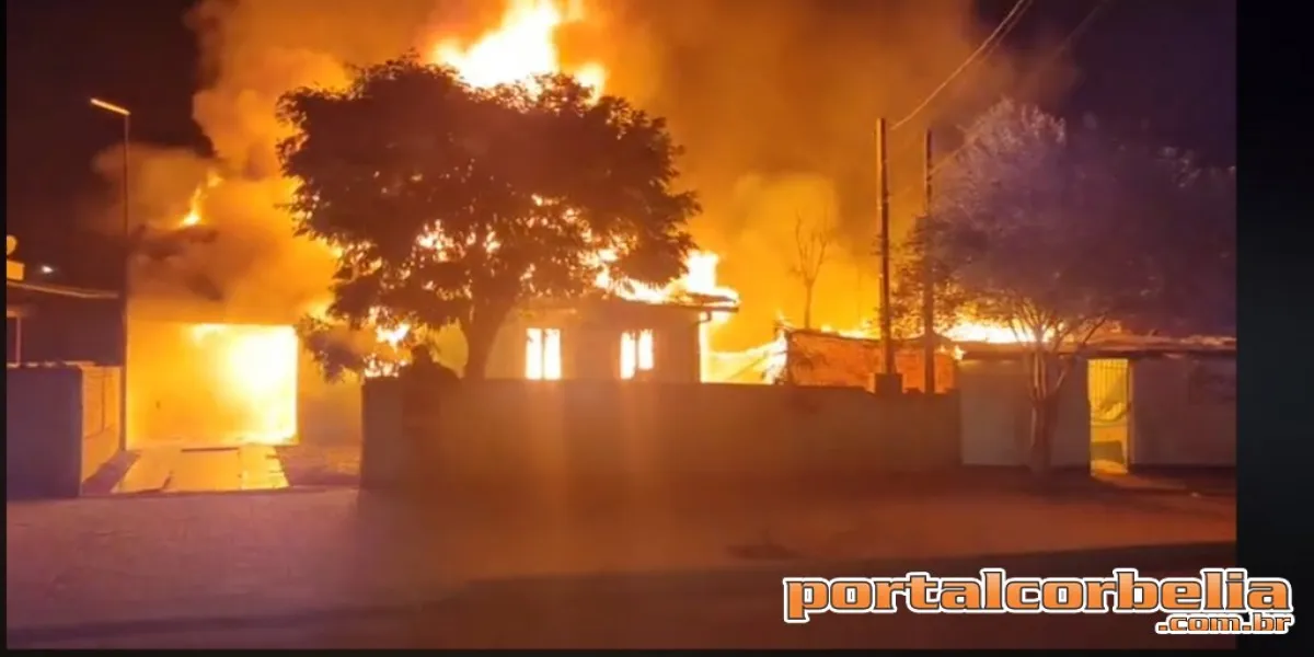 Um incêndio de grandes proporções foi registrado no final da noite deste sábado na Avenida Castelo Branco no Jardim Vera Lúcia em Corbélia.