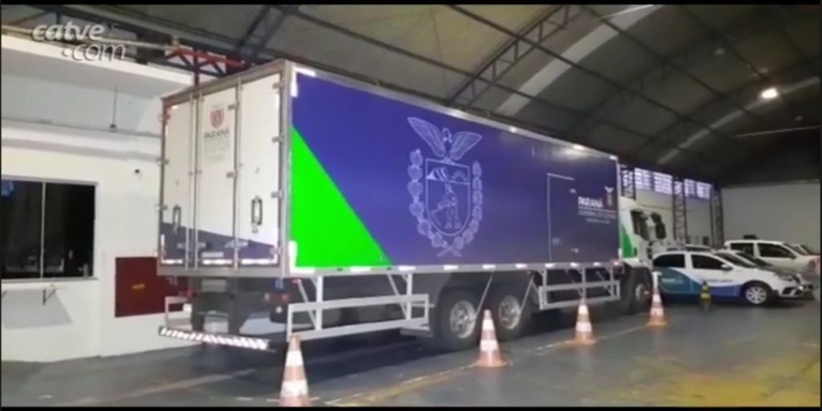 As vacinas produzidas em parceria do Instituto Butantan foram transportadas por caminhões refrigerados que mantêm o imunizante nas condições ideais de armazenamento, do Cemepar - Centro de Medicamentos do Paraná.