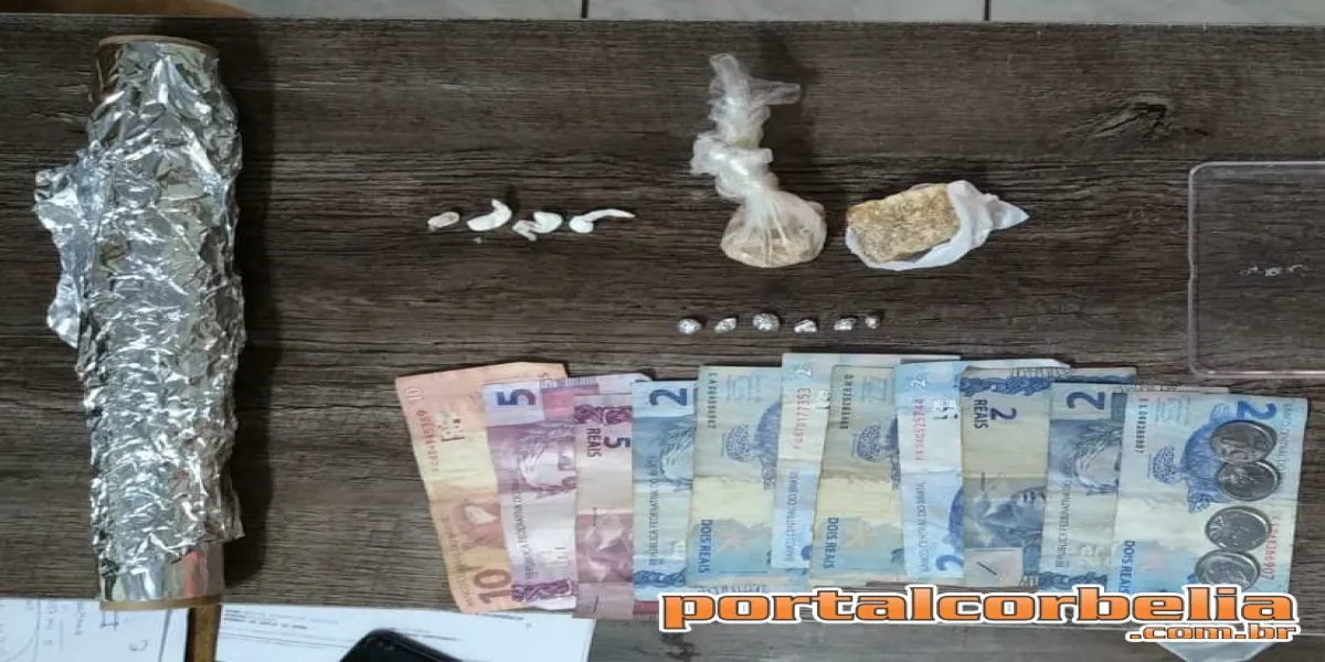Equipes da Polícia Militar de Corbélia realizaram abordagem a um suspeito em frente a uma residência com a suspeita de ser ponto de tráfico de drogas na tarde desta segunda feira em Corbélia onde foi encontrado com um menor, 45 pedras de crack pesando 9,5 gramas e uma quantia em dinheiro somando R$177,50 guardados dentro de uma carteira de cigarro.