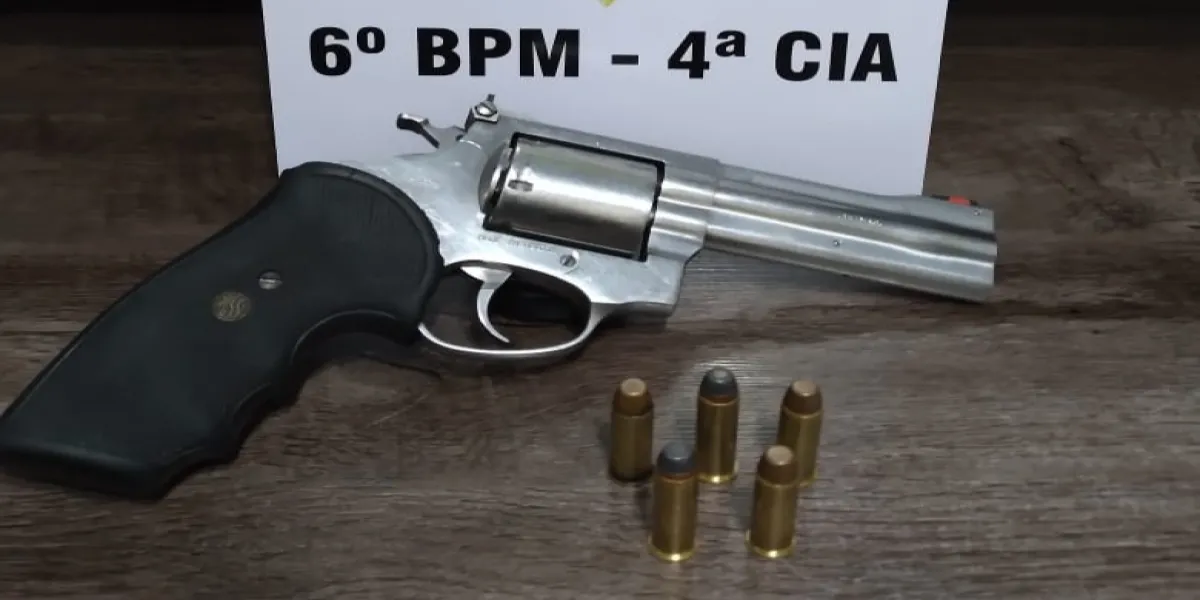 Quando a viatura se aproximou do local, foi avistado que os mesmos estavam voltando para o carro suspeito quando equipe conseguiu abordar o veiculo e durante revista no seu interior foi localizada uma arma calibre 357 com 5 munições intactas.
