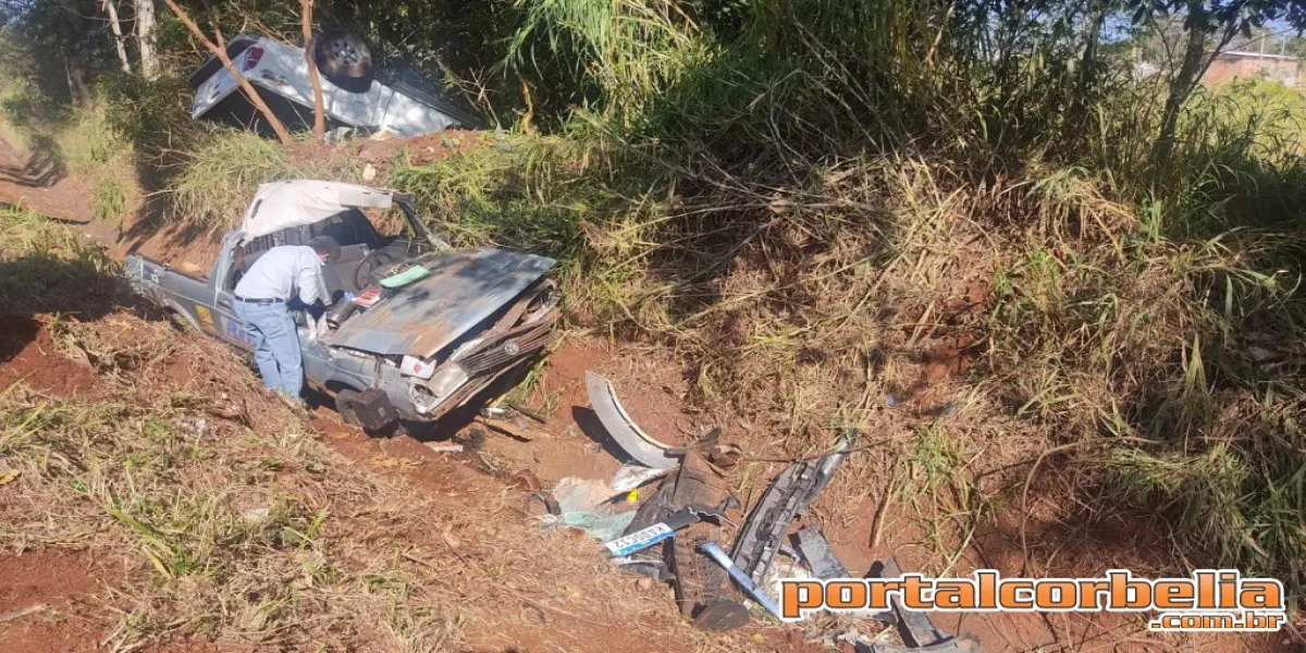 Uma colisão seguida de capotamento envolvendo uma Saveiro e uma Hilux foi registrada nesta manhã por volta das 09h30 na BR369 na área urbana de Corbélia.