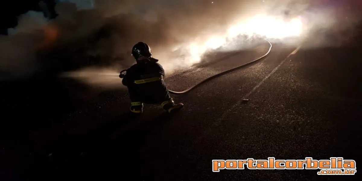 Incêndio a veículo é registrado na BR369 durante a madrugada em Corbélia