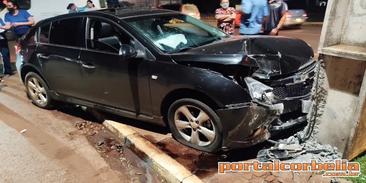 Um veículo Cruze atingiu um poste na avenida Rio Grande do Sul após a condutora perder o controle da direção no início da noite deste sábado.