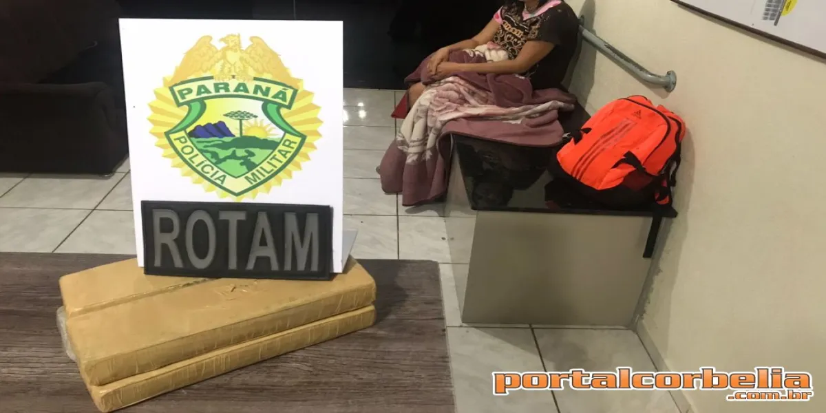 Uma equipe da ROTAM apreendeu nesta terça feira em Corbélia 4 tabletes de maconha em um ônibus que fazia a linha de Foz do Iguaçu à Brasília.