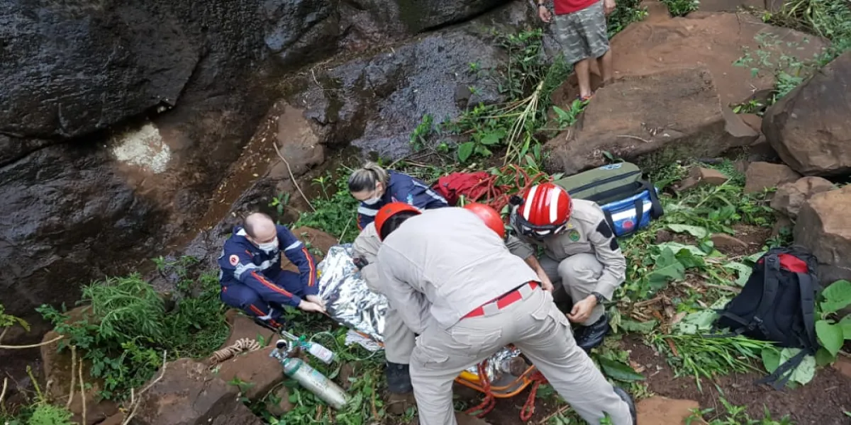 Homem fica gravemente ferido ao sofrer queda de cachoeira em Corbélia
