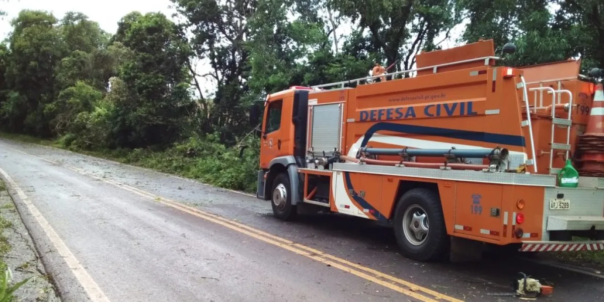 Defesa Civil faz desobstrução de pista na PR573 após vendaval