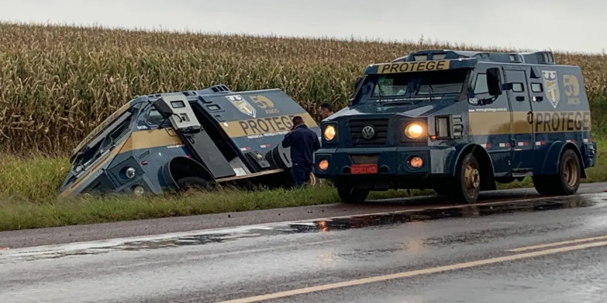 Uma veículo de transporte de valores saiu da pista após problemas mecânicos na manhã desta sexta feira na BR369 entre as cidades e Cascavel e Corbélia.