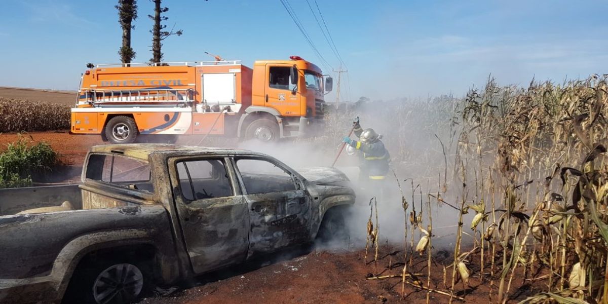 Uma equipe da Defesa Civil foi acionada no início da tarde desta segunda-feira para combater um incêndio a veículo em uma área rural nas proximidades da comunidade Central Santa Cruz em Cafelândia.