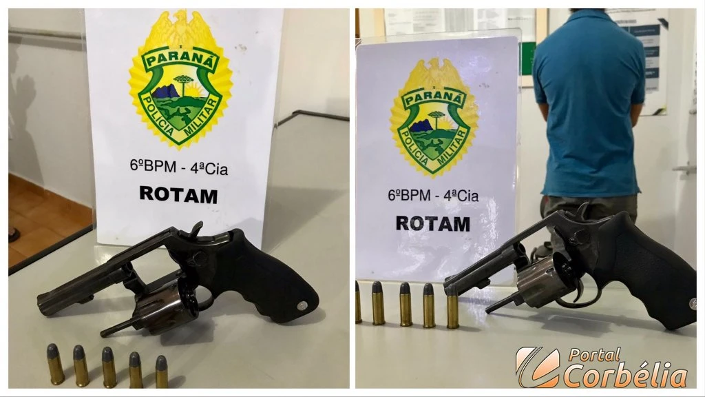 Equipe da Rotam da 4ªCia durante abordagem a um bar na rua Olívio Dal Magro na cidade de Cafelândia no final da noite desta quinta-feira logrou êxito em localizar com um homem de 49 anos um revólver Taurus calibre 38 com 5 munições intactas.