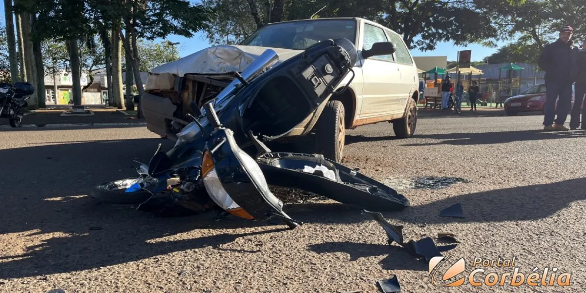 Um acidente envolvendo uma motocicleta Honda Biz e um veículo Fiat Uno foi registrado por volta das 08h50 deste sábado na rua Hortênsia na esquina com a rua zíper Amarelo no centro de Corbélia.