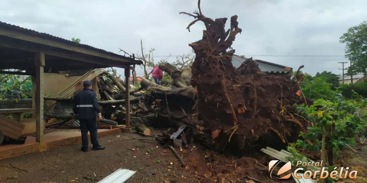 Também foram removidas uma árvore no bairro Jardim Vera Lúcia e uma outra na PR573, a qual estava obstruindo a pista entre as cidades de Corbélia e Braganey.