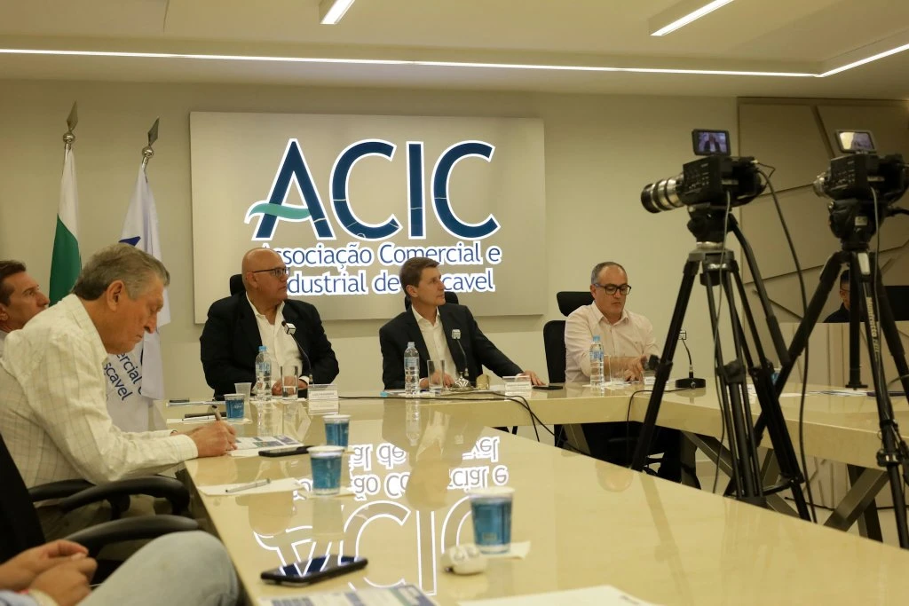 Empresários de Cascavel, na região Oeste do Paraná, participaram nesta quinta-feira (17) de uma reunião sobre a Nova Ferroeste. Em pauta, o andamento das últimas etapas antes de levar o projeto a leilão. Realizado na sede da Associação Comercial e Industrial de Cascavel (ACIC), o encontro foi presencial, com transmissão ao vivo.