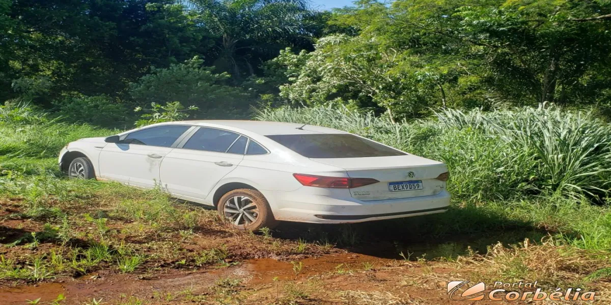 Equipe RPA de Corbelia foi para Br369 e através de informações conseguiu localizar veículo próximo entrada do Reassentamento São Francisco onde os suspeitos abandonaram o veículo e caíram pra dentro do mato.