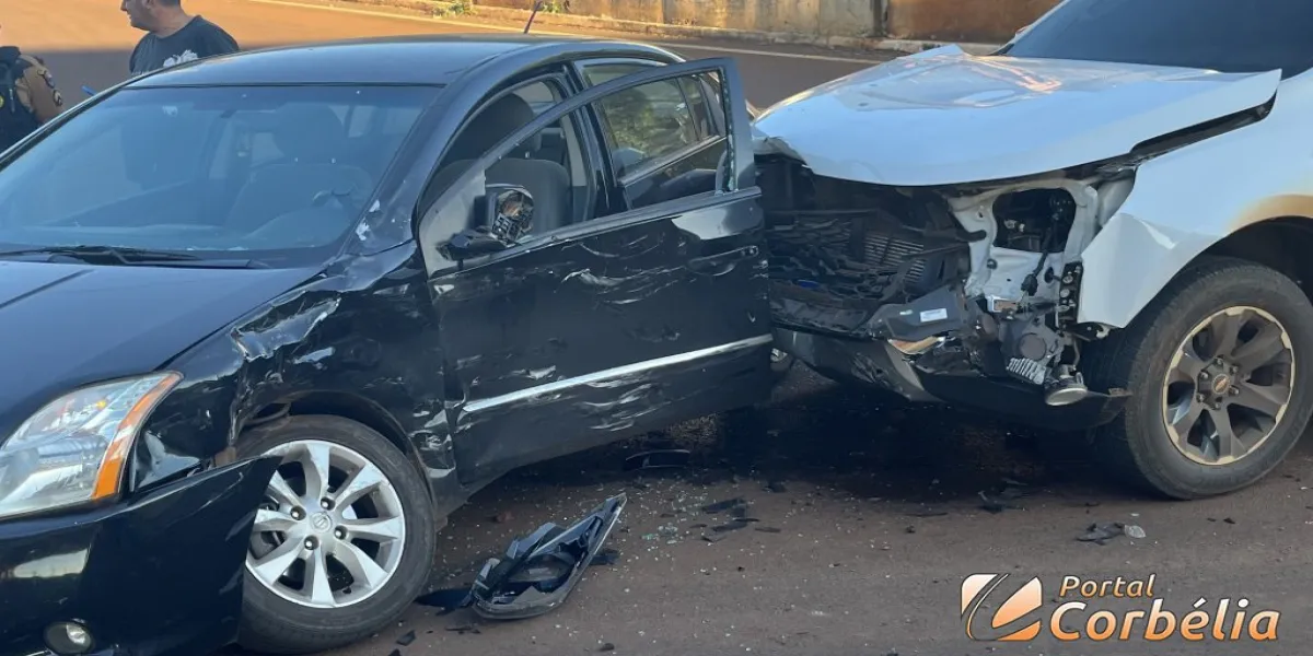 Uma colisão lateral envolvendo dois veículos foi registrada por volta das 08h00 na Avenida Santa Catarina na esquina com a rua Rainha da Neve no acesso a BR-369 em Corbélia.