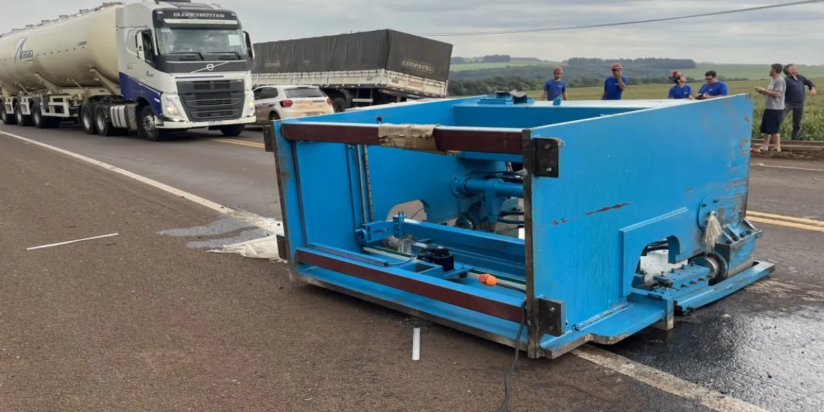 Peça se solta de caminhão e provoca acidente na BR 369 entre Cascavel e Corbélia