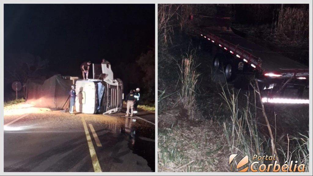 De acordo com informações , o motorista da carreta bitrem carregada de soja teria sido surpreendido por uma manobra que fechou seu espaço na pista. Como resultado, o motorista da carreta perdeu o controle do veículo e saiu da pista.