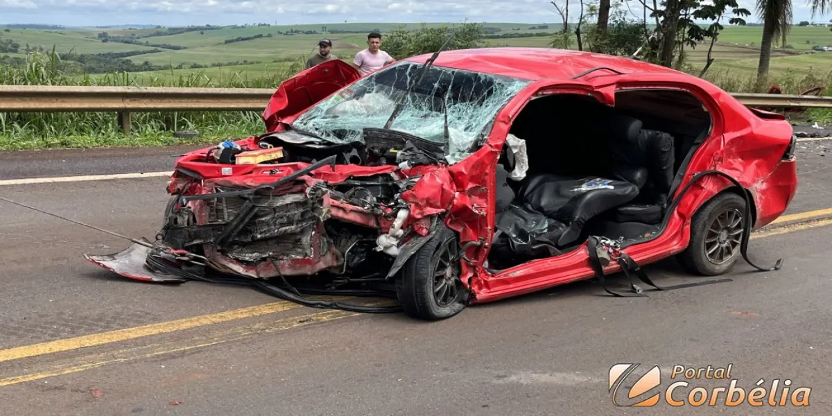 Na tarde desta quarta-feira (01/01) um gravíssimo acidente ocorreu na BR-369, próximo a Corbélia, deixando uma pessoa presa nas ferragens. O incidente, que resultou em uma colisão frontal, envolveu um Voyage com placas da Argentina, que seguia no sentido Ubiratã, e um Lancer de Seara, Santa Catarina.