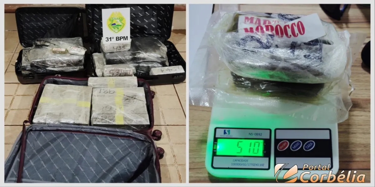 Durante uma abordagem rotineira, a equipe da rádio patrulha da Polícia Militar de Corbélia realizou uma significativa apreensão de drogas, totalizando aproximadamente 90kg.