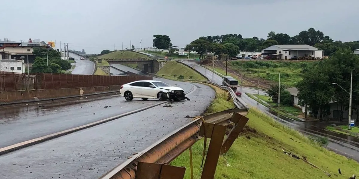 Na manhã deste sábado (20), um acidente de trânsito foi registrado na rodovia BR-369, próximo a Corbélia. A situação ocorreu após uma aquaplanagem, quando o condutor de um Honda Civic perdeu o controle, resultando no veículo rodando na pista e colidindo com o guardrail.