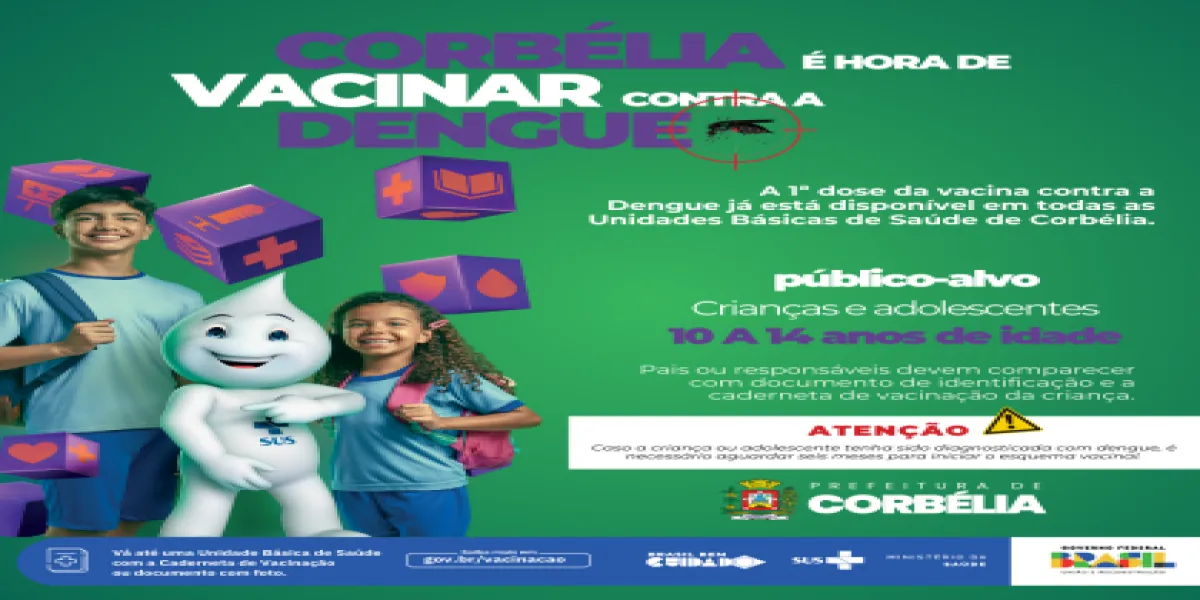 A Secretaria Municipal de Saúde de Corbélia anunciou o início da vacinação contra a dengue nesta segunda-feira, 06, em todas as Unidades Básicas de Saúde, direcionada a crianças de 10 a 14 anos.