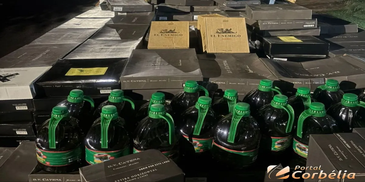 Entretanto, ao realizar uma verificação no veículo, os agentes encontraram aproximadamente 20 galões de azeite de oliva e cerca de 700 caixas de vinho, ambos de origem estrangeira, sem a devida documentação legal.