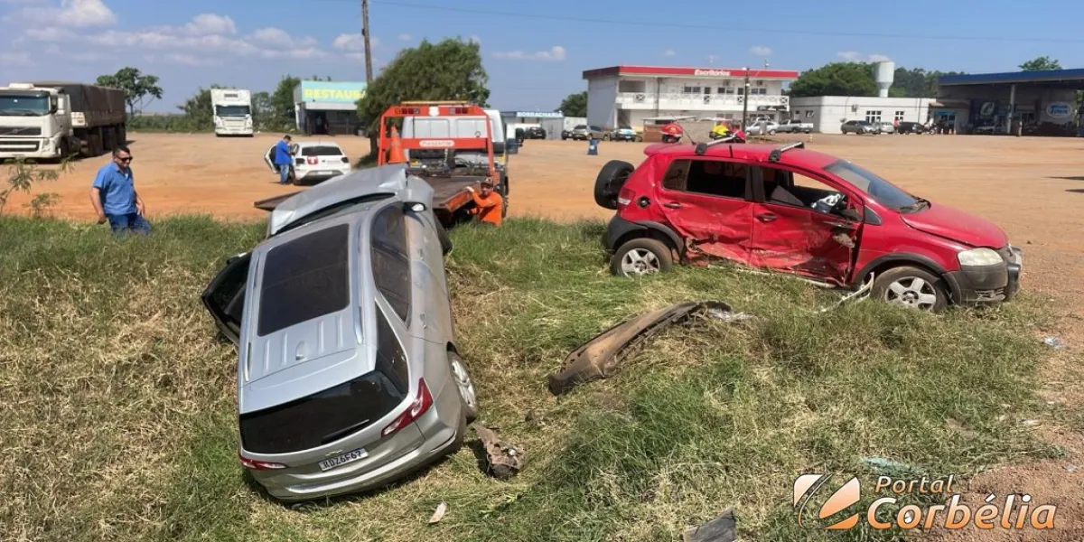Segundo informações preliminares, os veículos seguiam por sentidos opostos da rodovia quando um deles tentou acessar um posto de combustíveis, causando a colisão. O impacto foi tão forte que ambos os carros foram projetados para fora da pista e pararam na valeta lateral.