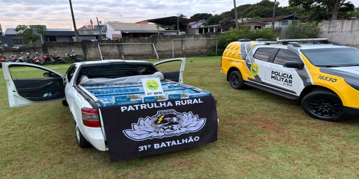 Equipe da Patrulha Rural de Corbélia apreende carga de cigarros contrabandeados avaliada em R$ 140 mil