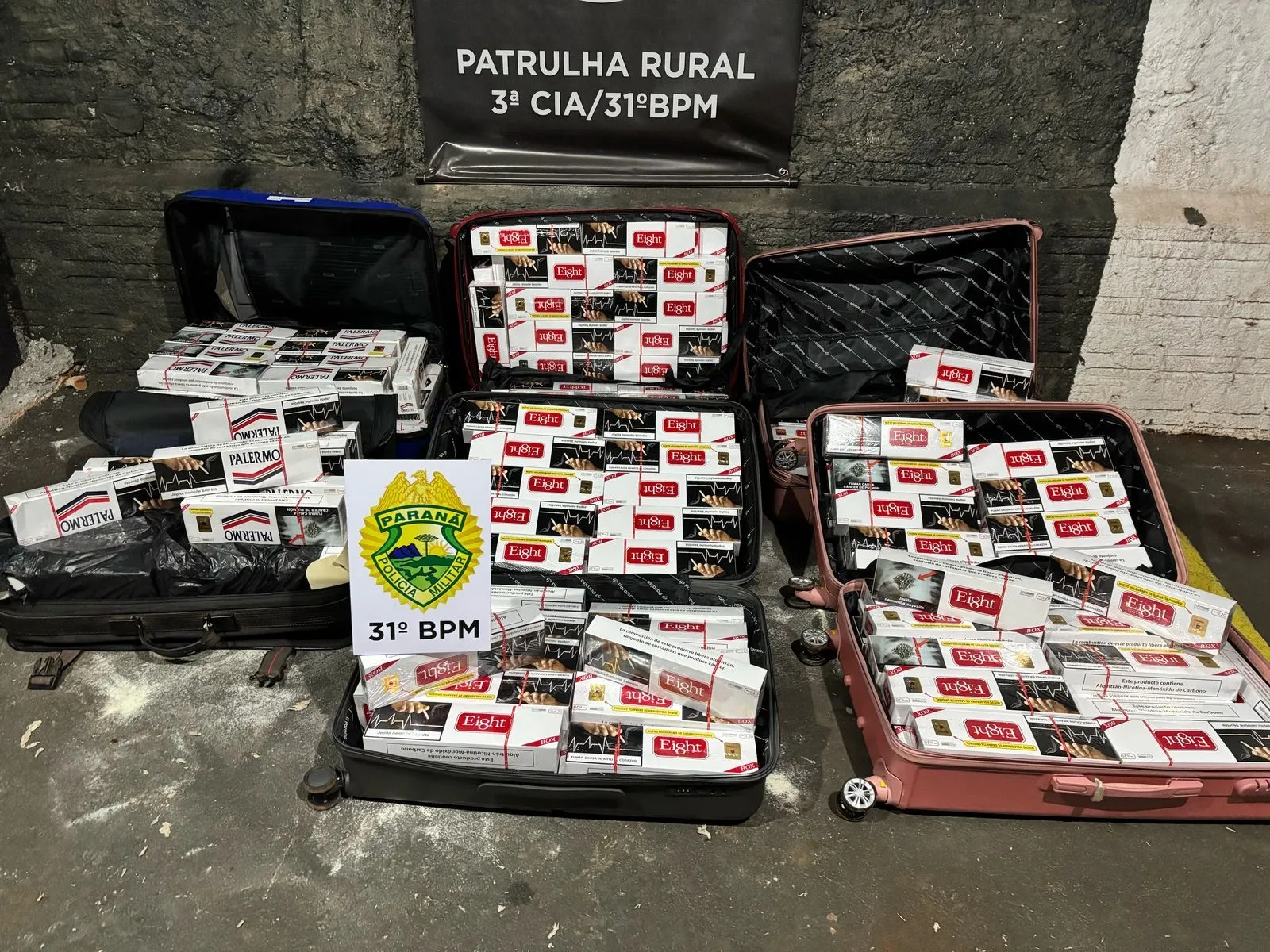 A Polícia Militar apreendeu na noite desta quinta-feira (20), uma carga de cigarros contrabandeados do Paraguai durante uma abordagem a um ônibus de transporte rodoviário. A ação ocorreu por volta das 22h44, no município de Corbélia, e faz parte da Operação Força Total Brasil XII, conduzida pela Patrulha Rural da 3ª Companhia.