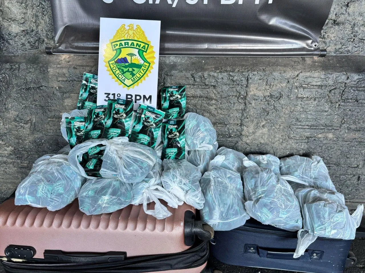 A abordagem ocorreu após uma denúncia informar sobre o transporte de drogas no coletivo. Com o apoio do motorista, os policiais localizaram duas bagagens suspeitas. Ao verificarem os comprovantes de despacho, identificaram que os volumes pertenciam a uma adolescente. Dentro das malas, foram encontrados aproximadamente 400 cigarros eletrônicos contendo 96% de THC, substância psicoativa presente na cannabis.
