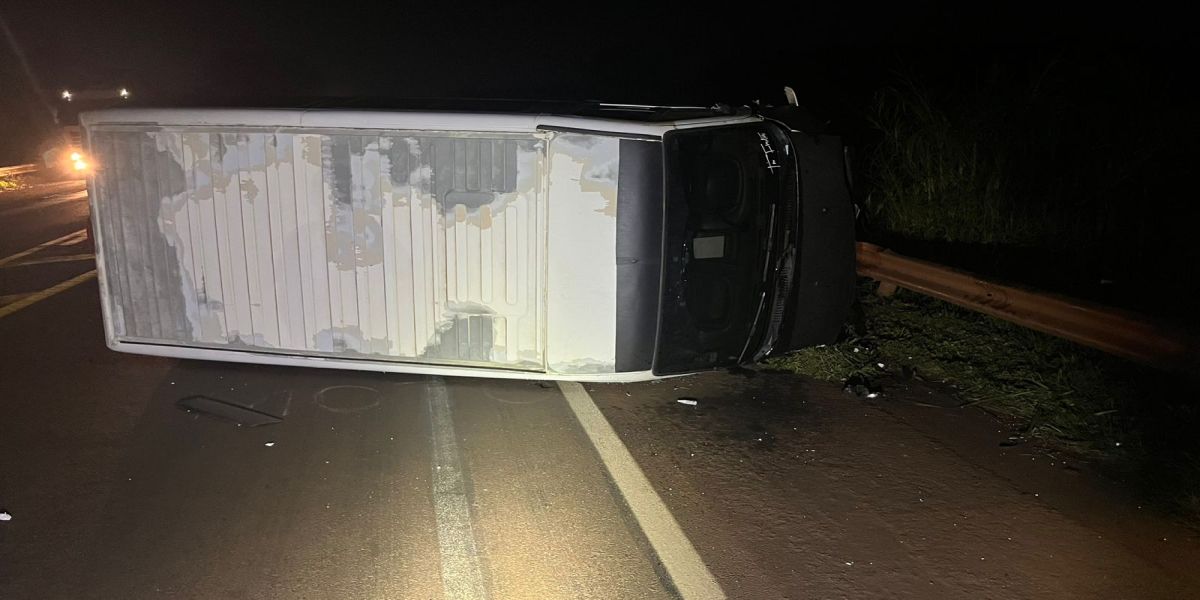 Uma colisão lateral seguida de tombamento foi registrada no final da tarde desta quarta-feira (4), na BR-369, próximo ao trevo secundário de acesso ao município de Corbélia, no Paraná. O acidente envolveu uma van carregada com morangos, que vinha de Minas Gerais, e um ônibus de transporte de passageiros.