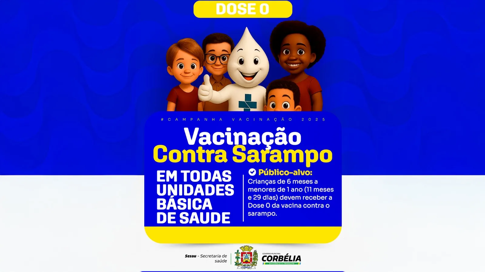A Secretaria Municipal de Saúde de Corbélia iniciou uma ação de intensificação da vacinação contra o sarampo, com foco especial em crianças de seis meses a menores de um ano (11 meses e 29 dias). A medida segue uma nova recomendação do Ministério da Saúde e tem como objetivo aumentar a proteção desse grupo etário com a aplicação da chamada “Dose 0”.
