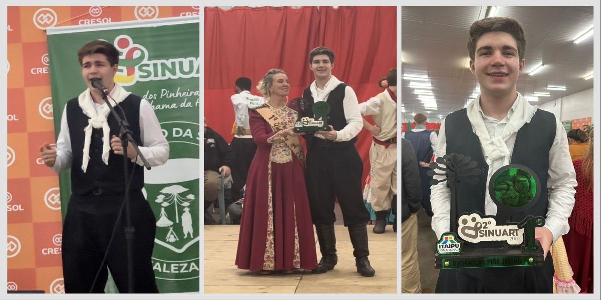 Corbélia voltou a brilhar no cenário da cultura tradicionalista gaúcha. O jovem Renan Biazus Bednarski, de 16 anos, conquistou o 1º lugar na categoria juvenil de declamação durante o 2º Sinuarte, Seminário de Arte e Tradição Gaúcha, realizado entre os dias 21 e 23 de junho, na cidade de Realeza (PR). Ele apresentou a obra “Bochincho”, de Jayme Caetano Braun, um dos grandes nomes da poesia regionalista.
