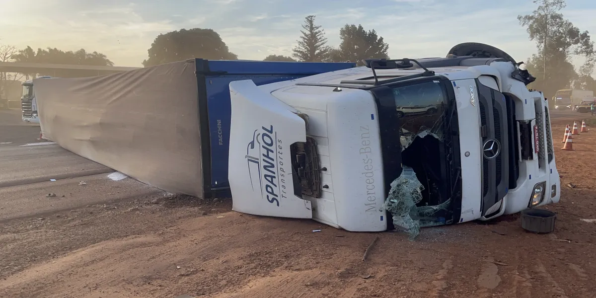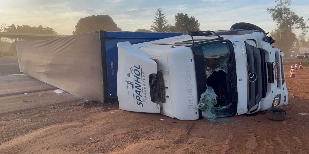 Condutor alcoolizado causa colisão e tombamento de carreta carregada com amido; mulher fica presa nas ferragens