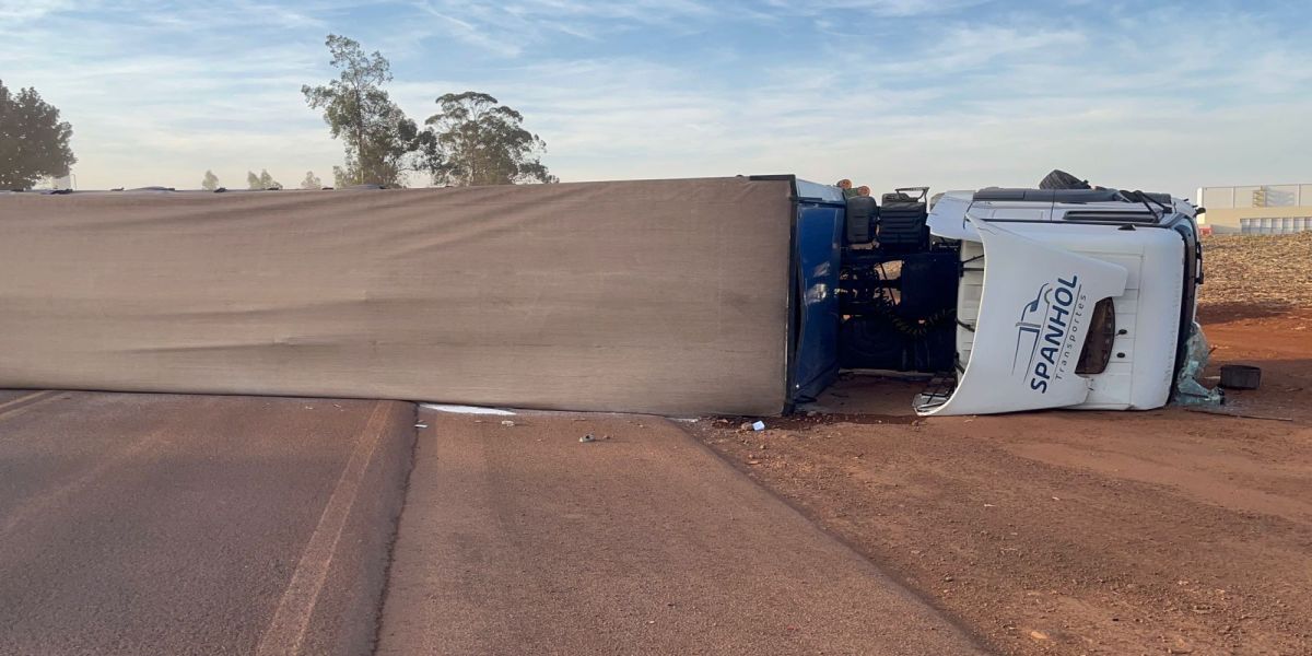 Colisão provoca tombamento de carreta na BR-369 em Corbélia