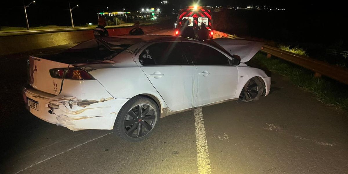 Um Mitsubishi Lancer ficou destruído após capotar no km 483 da BR-369, em Corbélia. O veículo bateu contra a mureta de proteção antes de capotar. O acidente aconteceu no perímetro urbano da rodovia e, apesar da gravidade, o motorista foi socorrido pelo Serviço de Atendimento Móvel de Urgência (Samu) e encaminhado ao Pronto Atendimento Municipal (PAM) de Corbélia com ferimentos leves.