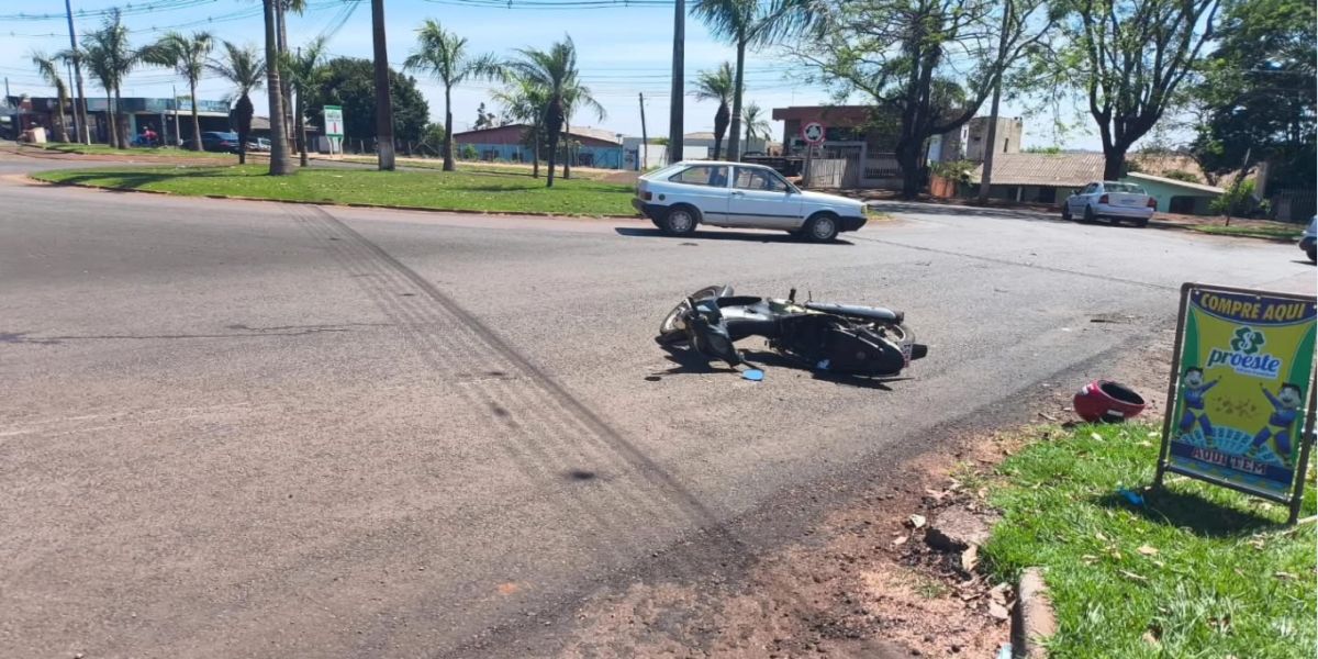 Acidente entre carro e moto deixa motociclista com fratura exposta em Cafelândia