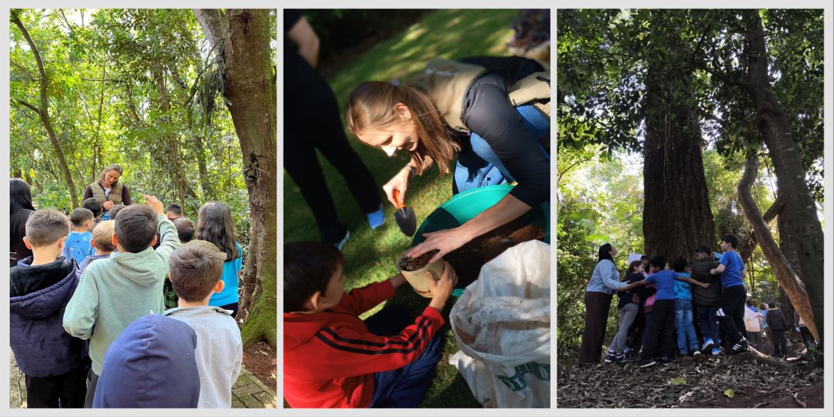 Durante a visita, as crianças tiveram a oportunidade de conhecer e identificar diversas espécies de árvores, algumas com mais de 200 anos de existência. A caminhada pelo parque foi conduzida pelas professoras e biólogas Patricia Dalla Vecchia e Maria Luisa Ribeiro Nascimento, que apresentaram curiosidades e informações sobre a importância da vegetação local de forma lúdica e acessível, despertando o interesse dos pequenos pela natureza.