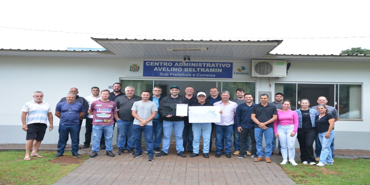 A assinatura do contrato contou com a presença do Prefeito Thiago Daross Stefanello, do Vice-Prefeito Sandro Huf, do subprefeito Almir Casanova, dos secretários Júnior Piovesan e Marcos Jandrey, do engenheiro civil Eduardo Fontana, do representante da empresa executora Matheus, dos vereadores Zezinho Milhome, Adelar Mujol, Eli Stefanello e Geraldo Skottki, além da comunidade em geral. O contrato foi oficialmente assinado pelo prefeito, vice-prefeito, subprefeito, secretários e Matheus, representante da empresa executora, e rubricado pelos vereadores, formalizando o início da obra.