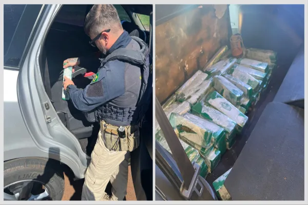 A Polícia Rodoviária Federal (PRF) realizou na manhã desta sexta-feira uma importante apreensão de drogas na BR-369, em Corbélia. Por volta das 9h, durante fiscalização de rotina no km 465,8, os agentes abordaram um veículo Hyundai Santa Fé, conduzido por um homem de nacionalidade paraguaia que seguia sentido Maringá.