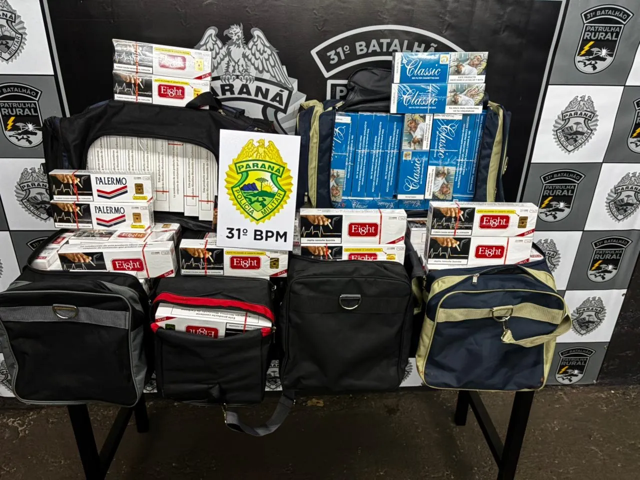Na madrugada desta terça-feira (02), por volta das 2h, uma equipe da Patrulha Rural da 3ª Companhia de Corbélia apreendeu uma grande quantidade de cigarros de origem paraguaia durante abordagem a um ônibus que seguia de Foz do Iguaçu para Londrina.
