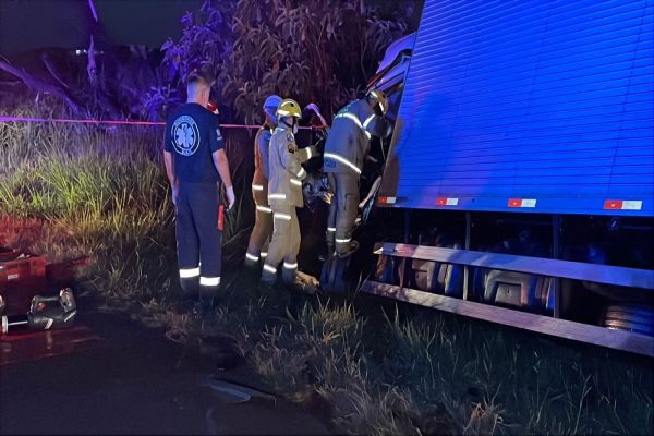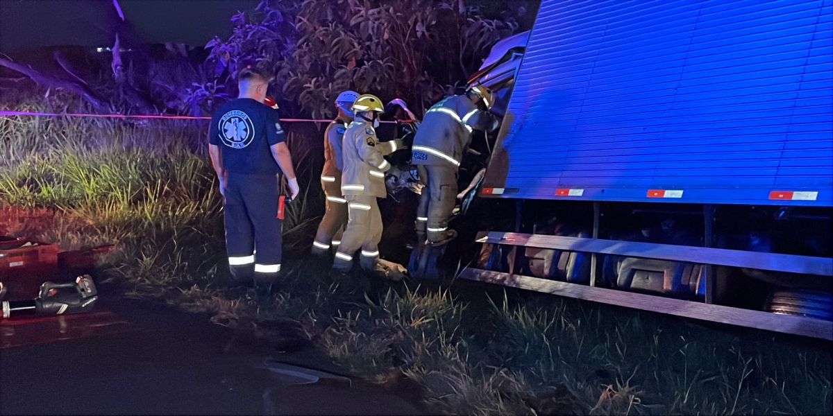 Uma colisão de grandes proporções deixou um cenário de destruição e intensa mobilização de equipes de resgate na BR-369, no trecho entre Cascavel e Corbélia. O acidente, registrado no quilômetro 496, envolveu um Volkswagen Voyage, uma van, um caminhão baú e uma motocicleta, resultando em uma morte, três feridos e bloqueio total da rodovia.