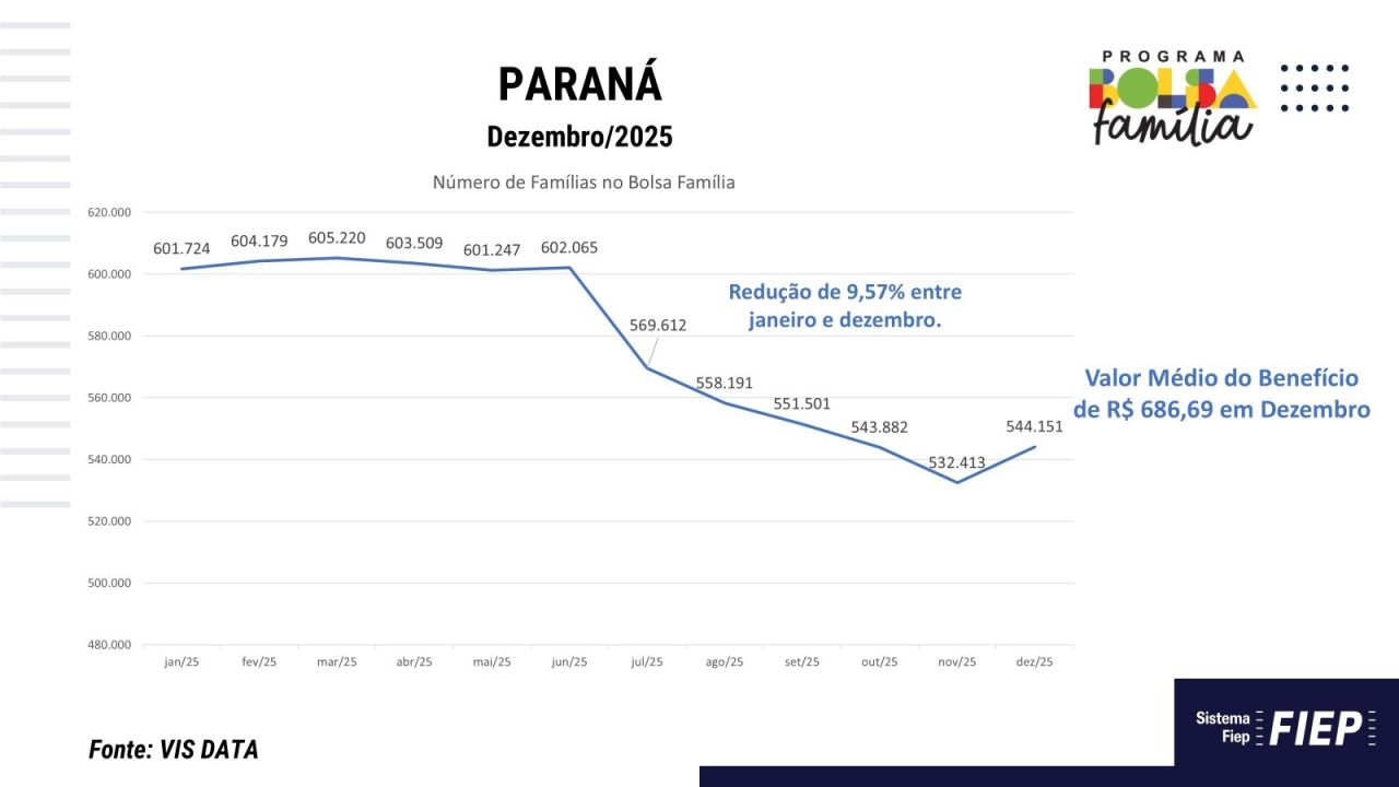 Município supera média do Paraná e registra queda mais que o dobro do índice estadual no programa social