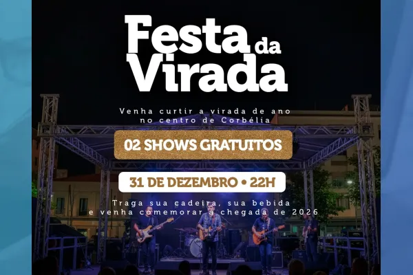 O município de Corbélia já está em clima de celebração para a chegada de 2026. No dia 31 de dezembro, a partir das 22h, o centro da cidade será palco da tradicional Festa da Virada, que contará com shows gratuitos, reunindo moradores e visitantes para uma noite especial de música, alegria e confraternização.