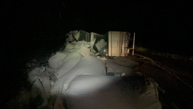 Um bitrem carregado com farinha de trigo tombou na noite desta sexta-feira (09 de janeiro), por volta das 20h, na BR-369, no trecho entre Corbélia e o distrito de Nossa Senhora da Penha.