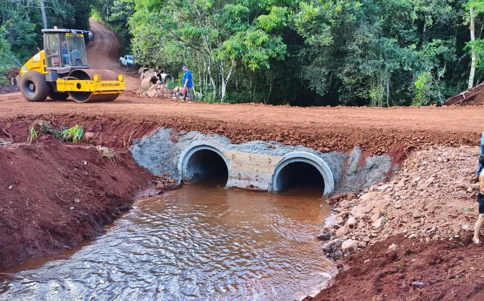 Para a execução da obra, foram utilizadas 20 manilhas de concreto, com 1,5 metro de diâmetro, garantindo maior resistência, segurança e durabilidade à estrutura. O investimento total foi de R$ 32.700,00, sendo R$ 19.700,00 destinados à aquisição das manilhas, R$ 3.000,00 aplicados em concreto e aproximadamente R$ 10.000,00 em cascalho e demais serviços, com recursos próprios do município.