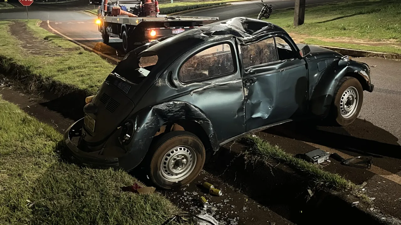 Acidente envolvendo um VW Fusca aconteceu próximo à Avenida Santa Catarina e não deixou feridos