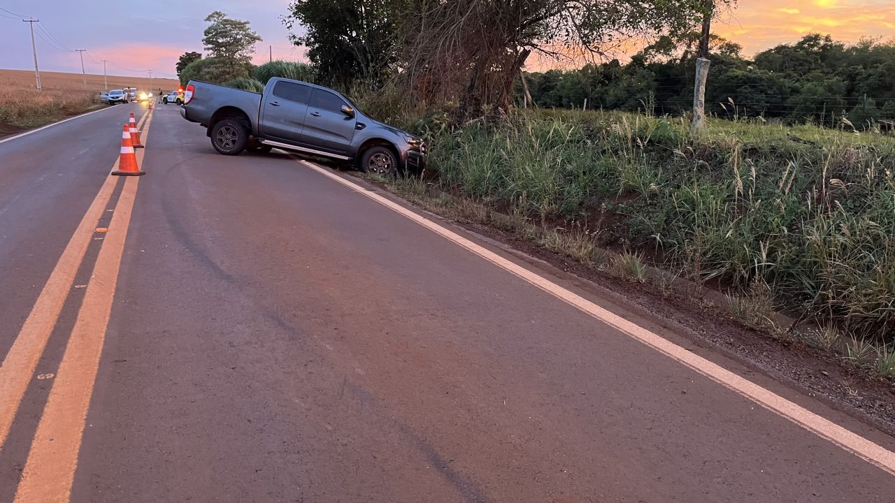 Colisão entre Peugeot e Ranger deixa mulher com ferimentos leves na PR-574 em Corbélia