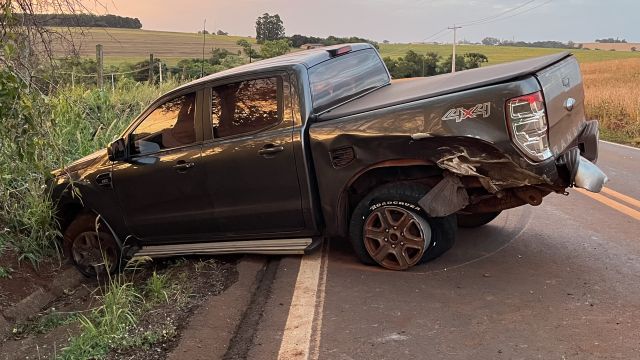 Uma colisão envolvendo um veículo Peugeot e uma caminhonete Ranger foi registrada no final da tarde deste domingo, por volta das 18h, na PR-574, em Corbélia. O acidente aconteceu a aproximadamente um quilômetro do entroncamento com a BR-369, em um trecho conhecido pelo fluxo de veículos entre a rodovia estadual e a federal.